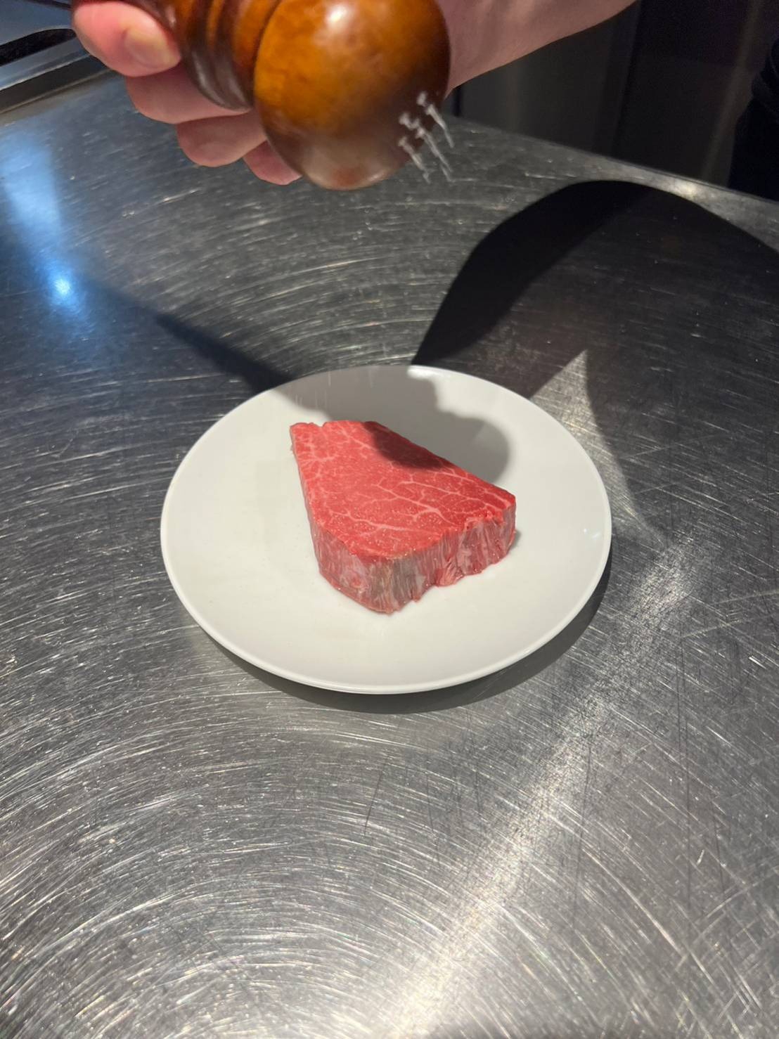 2、200°程度に熱したフライパンに牛脂(なければサラダ油でも良い)をひいていく。脂身の少ない肉だとバターをまぜればひっつきにくくなる。